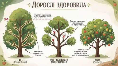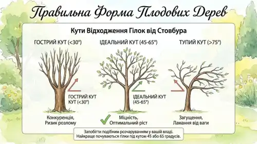 Правильна форма плодових дерев, інфографіка розроблена нейромережею Nano Banana.