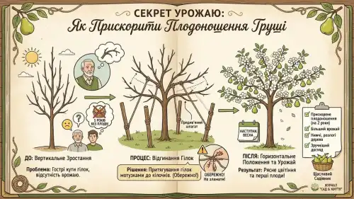 Якось навесні я поскаржився дядькові, досвідченому садівникові, що ніяк не можу дочекатися плодоношення від п’ятирічної груші. Він порадив перевести гілки, що ростуть під гострим кутом, у горизонтальне положення.