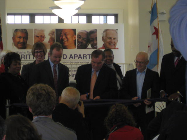 Будинку нашому рівно сто років. Він є архітектурною пам'яткою міста та розташований в історичному місці. Проект реставрації будинку коштував 28 мільйонів доларів і створив 63 робочі місця міської адміністрації. Замислювався цей будинок саме для проживання seniors, пенсіонерів чи ще працюючих. На урочисте відкриття будинку приїхав особисто мер міста Річард Дейлі, і мені вдалося його зафільмувати в момент розрізання стрічки.