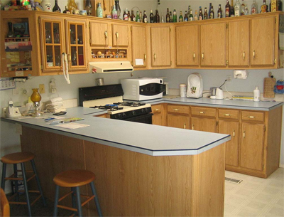 Дуже простора та зручна для господині. Все її обладнання було замовлено та поставлено разом з будинком. На стелі встановлений великий ліхтар, який робить це приміщення найсвітлішим, а поряд вмонтовані лампи, що дають ефект денного світла. На кухні є два великі прилавки, внизу яких безліч шаф, додаткові шафи висять на стінах. Є газова плита (з витяжкою), яка постачається зрідженим газом із танка, що знаходиться на вулиці, великий холодильник, посудомийна машина. Для нагрівання води в машині використовується електрика, а для сушіння посуду – пропан. Подвійна велика раковина теж дуже зручна: є де розвернутися. Гаряча вода для ручного миття посуду надходить із водонагрівача. У нашому господарстві є також багато будь-якої техніки, яка полегшує приготування їжі.