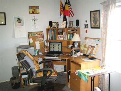Як я вже згадувала, колишні спальні були перетворені на два кабінети: для мене та чоловіка. Площа кожної кімнати приблизно 15 м2. З меблів, наприклад, у моїй кімнаті стоїть великий та зручний комп'ютерний стіл, книжкова шафа та тумбочка з відкидним верхом для швейної машини (я іноді люблю займатися рукоділлям). Також знайшлося місце і для бігової доріжки. Кабінет чоловіка більш завантажений, але це його територія, куди я особливо не хочу вторгатися.
