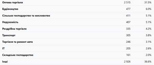 Компанії, що працюють у сфері торгівлі, найчастіше переїжджають: фактично, це кожен третій бізнес з усіх, хто переїхав по країні. Підприємства у сфері будівництва (6%) та нерухомості (5%) також часто переїжджають. За даними аналітиків, з початку року переїхали 411 компаній у сільськогосподарському секторі (5% від загальної кількості).