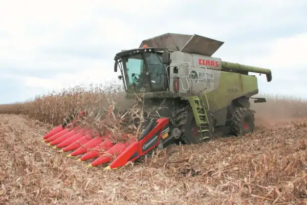 Окремо слід згадати про зернозбиральні комбайни. Для обмолоту кукурудзи найбільш підходять потужні комбайни роторного, комбінованого та барабанного типів. Це зумовлено, в першу чергу, високою врожайністю цієї затребуваної культури. Однак практичний досвід показує, що перевагу при збиранні кукурудзи із застосуванням кукурудзяних жаток варто все ж надавати комбайнам роторного типу, де головний робочий елемент молотарки — ротор. Його конструкція та технологічний режим обмолоту зерна (методом стирання) дбайливо ставляться до зерна і в той же час дозволяють значно збільшити інтенсивність процесів його відокремлення з обмолоченої соломи.